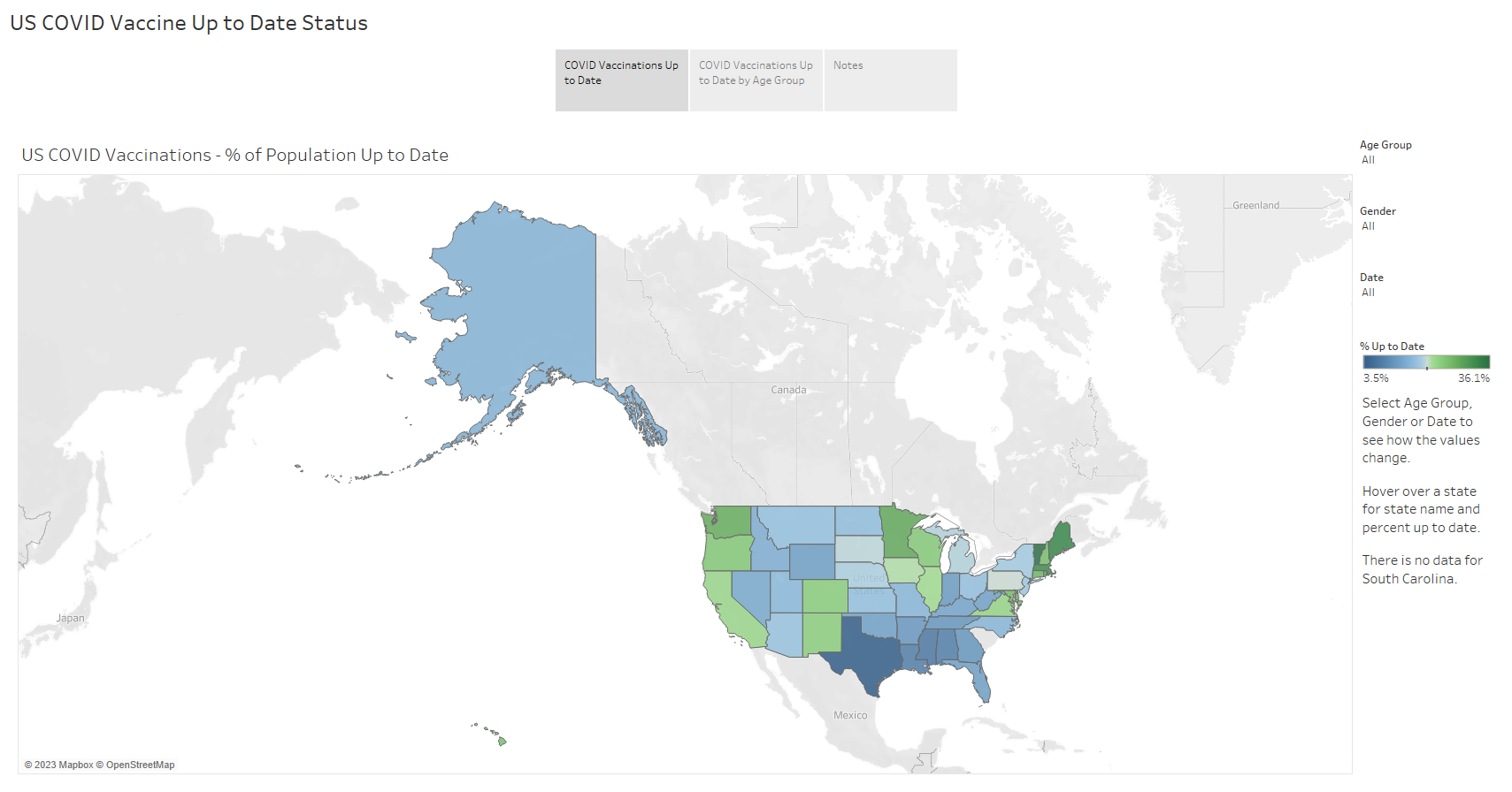 This project focuses on the utilization of a comprehensive dataset from the Centers for Disease Control and Prevention (CDC) to create interactive, color-coded visualizations that show the status of COVID-19 vaccinations across the United States. The dataset, although no longer updated, is a valuable resource for honing data cleaning skills in Python and developing interactive visualizations in Tableau.
