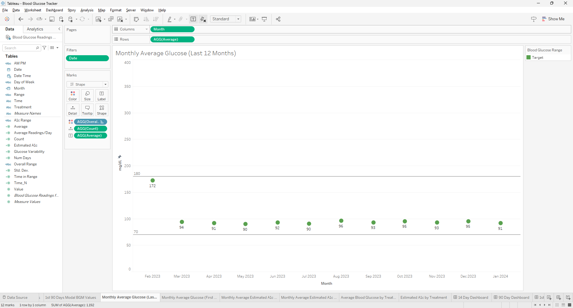Creating a visualization for the most recent 12 months in Tableau can be a common requirement for time series analysis. To achieve this, you can use the `DATETRUNC` function to truncate your date data to the first day of each month, ensuring that your months will be in the correct order when aggregated. Here's how to use the `DATE(DATETRUNC('month',[Date]))` function effectively in Tableau for this purpose.